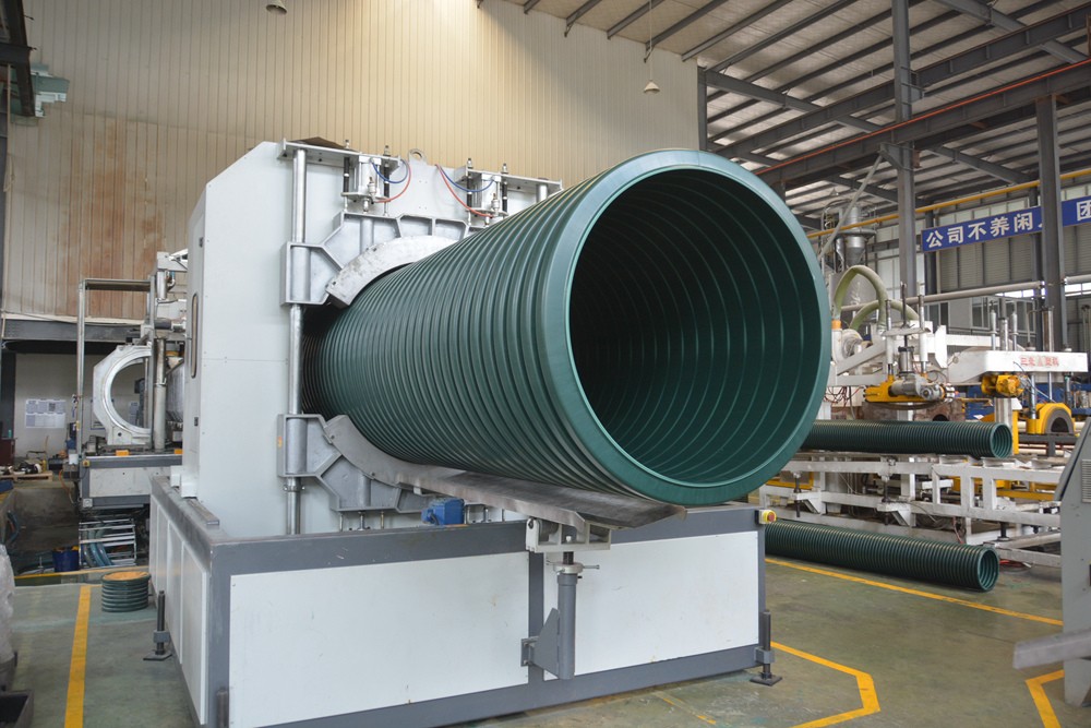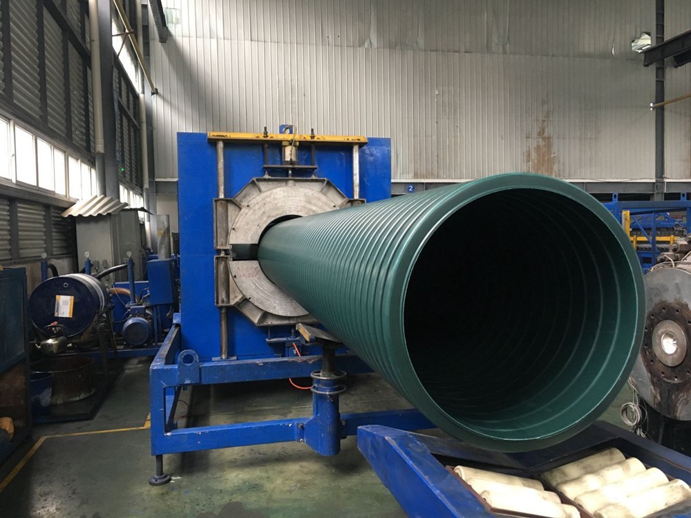 在康泰塑膠的產(chǎn)品展示廳,首先映入眼簾的是一根高約80厘米、直徑約20厘米、壁厚約2厘米的綠色波紋管道。由康泰塑膠研發(fā)團(tuán)隊(duì)獨(dú)立研發(fā),填補(bǔ)了國(guó)際國(guó)內(nèi)的空白,引發(fā)了塑料管道行業(yè)的一次革命。這就是是公司研發(fā)出的首款產(chǎn)品——MPVE?波紋管材。